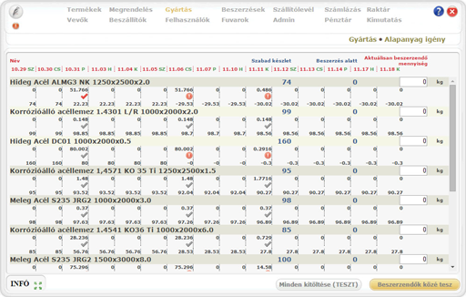 Az alapanyagon kívül a kapacitást is biztosítanunk kell a gyártáshoz. Adott esetben gépeket, embereket vagy mondjuk munkatípusokat kell lekötnünk, de arra is kíváncsiak lehetünk, hogy hol rendelkezünk még szabad, eladható kapacitással. A siker kulcsa itt is a cégek egyedi igényeinek megvalósításában van.